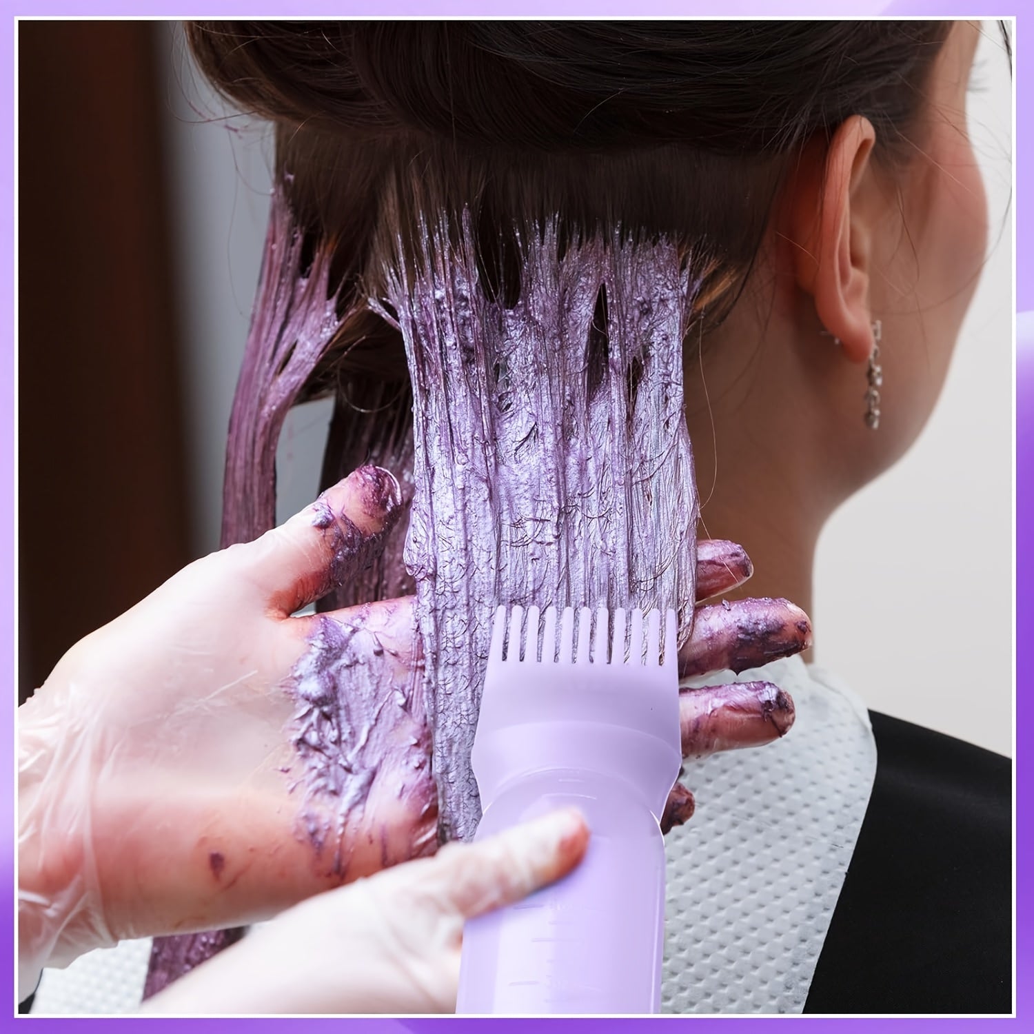 Achieve salon-quality hair at home with this 2-piece hair care set. Includes a silicone scalp massager to stimulate blood circulation and reduce dandruff, a non-slip detangling brush for wet or dry hair, and a hair oil dispenser for precise nourishment. Safe for sensitive scalps, color-coded combs for easy styling, and perfect for daily use. No electricity needed—ideal for home or professional salon use.