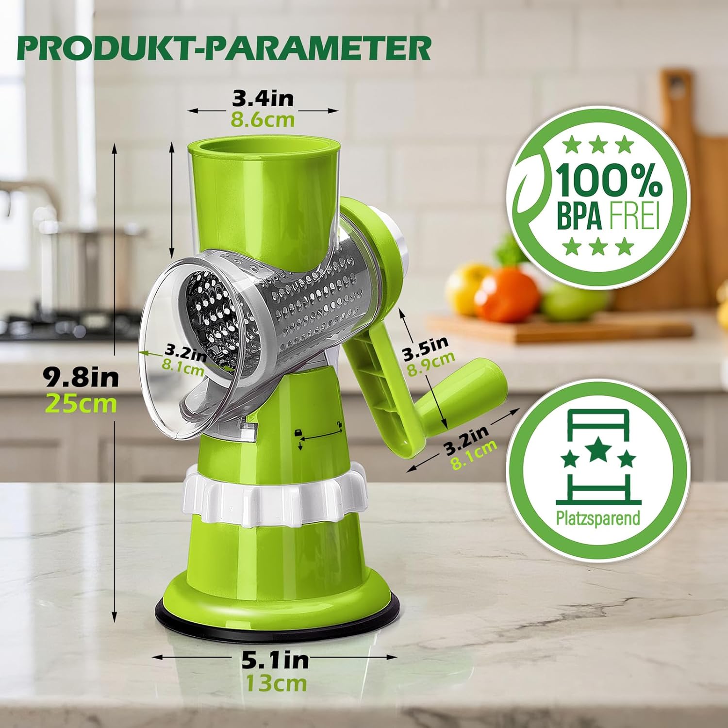 Meet the 3-in-1 Rotary Grater & Slicer — your fast, safe, and mess-free solution for everyday kitchen prep. Grate, slice, and shred in seconds without using electricity or risking your fingers!